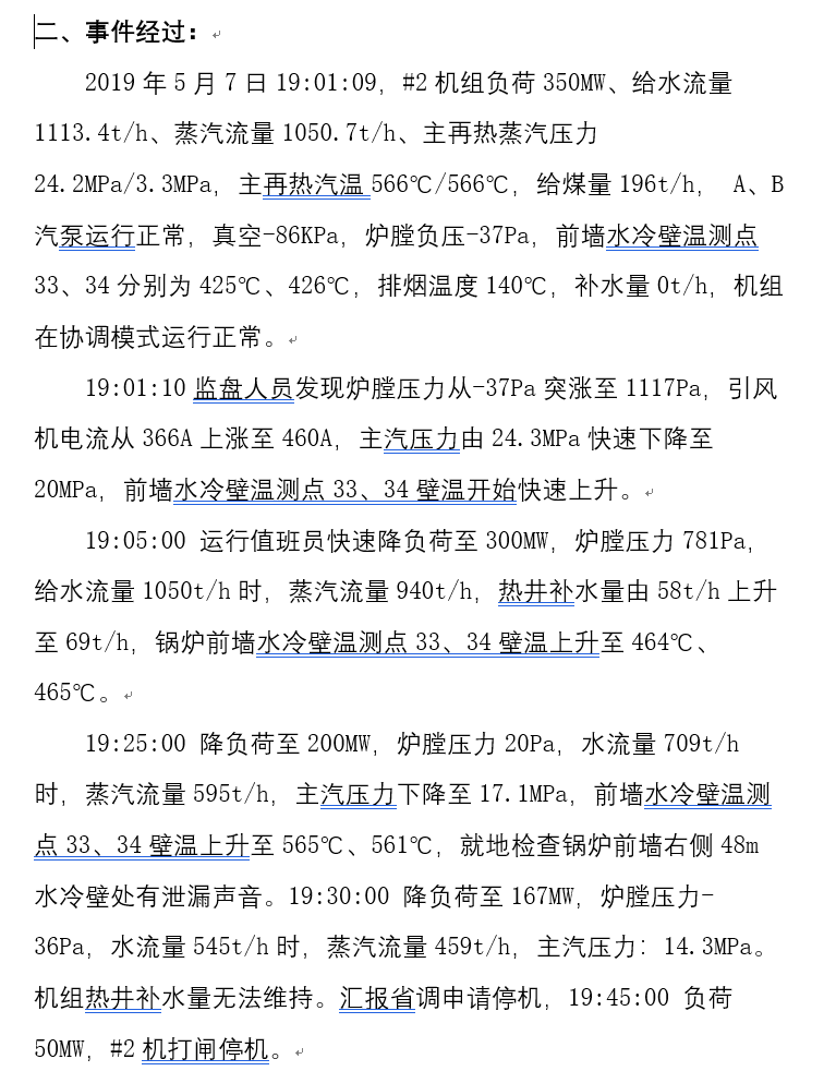 如果泄爆管排安裝有金屬壁溫測(cè)點(diǎn),其壁溫測(cè)點(diǎn)數(shù)值也會(huì)有明顯異常,通常表現(xiàn)為快速升溫,并高歷史同工況的歷史值。