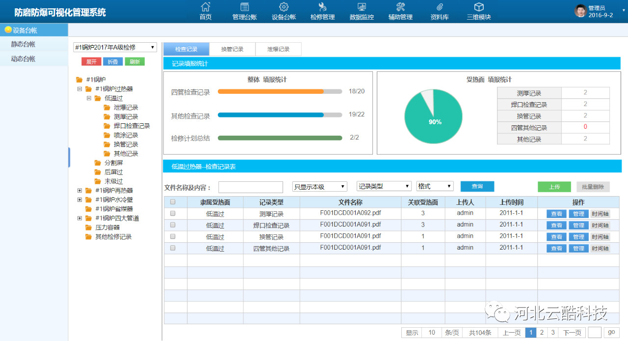 云酷科技多年來專注于電廠安全管理業務,針對鍋爐安全問題所研發的三維可視化鍋爐防磨防爆管理系統充分結合了先進的科技技術與電廠實際經驗,為鍋爐安全管理、四管泄爆問題提供管理工具。